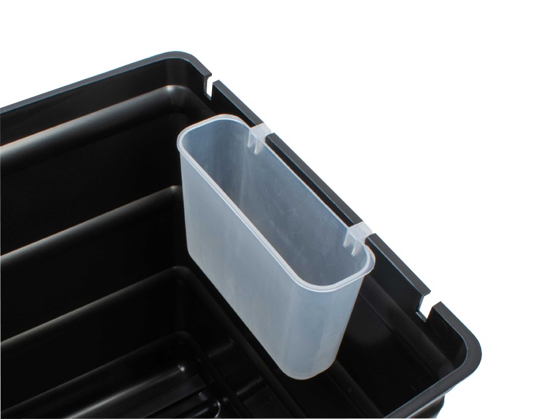 Sehr leiser Betrieb der Maschine. Abfallbehälter mit transparentem Fenster.