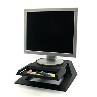 Kunststoffständer für LCD- oder CRT-Monitor- im unteren Teil unter dem Monitor ist er mit einer Schublade ausgestattet, die zur Aufbewahrung von Büromaterial, Taschenrechner, Nachrichten, Bleistiften usw. geeignet ist.