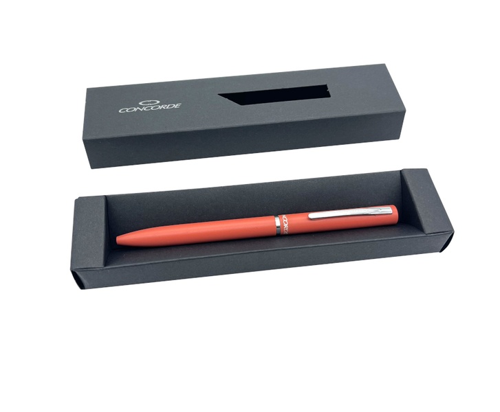 Volltext →Metallkugelschreiber mit Drehmechanismus im roten Design.