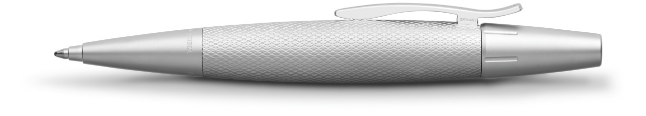 Eine elegante und zugleich moderne Kombination: Der silbern schimmerende Schaft aus Metall mit feiner Guilloche-Struktur und die matt verchromte Spitze, Griffstück oder Kappe.