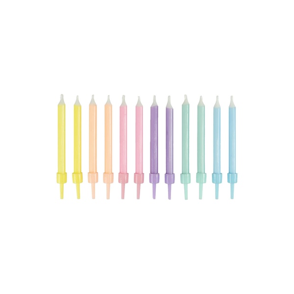 Geburtstagskerzen in Pastellfarben – 12 Stück sind eine klassische Tortendekoration für Kinder- und Erwachsenen-Geburtstage. Die zarten Pastellfarben verleihen jeder Torte ein elegantes und fröhliches Aussehen.