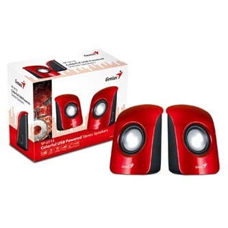 Papírenské zboží - Genius reproduktory SP-U115, 2.0, 3W, červeno-černé, regulace hlasitosti, stolní, 200Hz-1