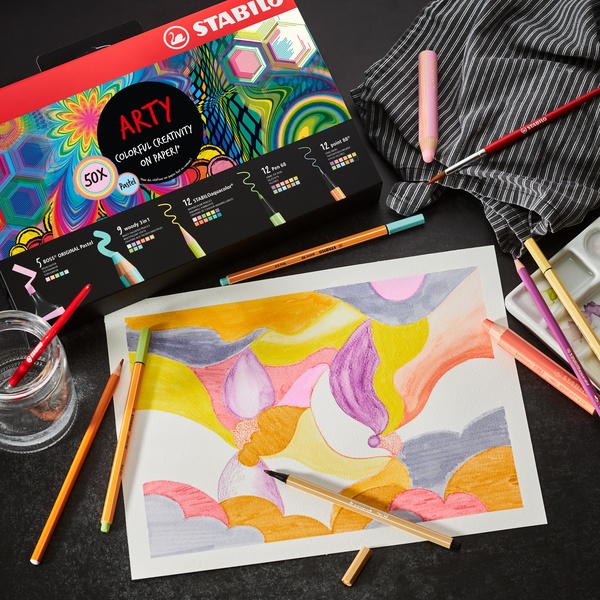 Kreativset Pastell STABILO ARTY 50-teiliges Set – Textmarker, Buntstifte, Liner, Marker St