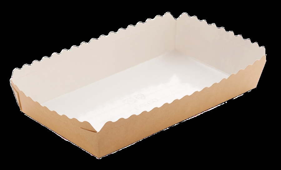 Papierbackform aus hochwertigem, hartem und flexiblem, recycelbarem Karton.