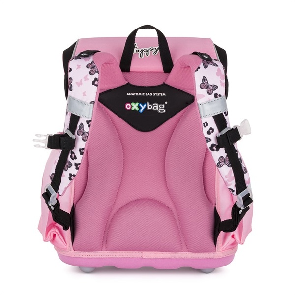 Ein geräumiges Hauptfach bietet ausreichend Platz für alle Schulmaterialien. Ein stabiler Boden verhindert das Umkippen und Auslaufen des Inhalts. Der Ranzen wird mit einer sicheren Metallschnalle mit Reflektor verschlossen. Die Vordertasche eignet sich ideal für einen Snack, und die reflektierenden Elemente erhöhen die Sichtbarkeit des Kindes.