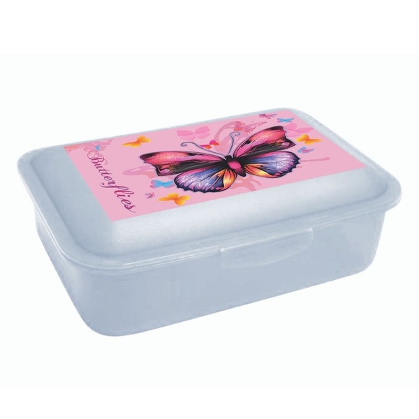 Volltext →Snackbox aus Kunststoff mit Schmetterlingsmotiv.