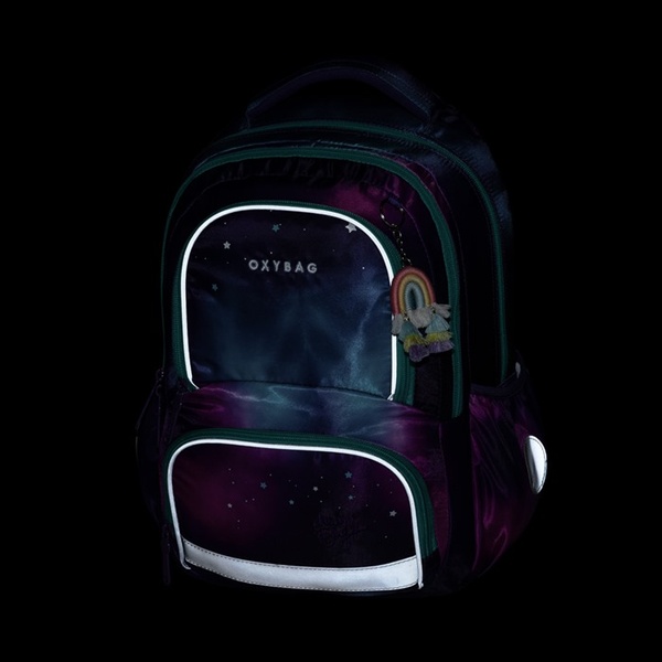 Der Schulrucksack OXY NEXT überzeugt durch ergonomisches Design und geringes Gewicht. Anatomisch geformter Rücken, gepolsterte Schultergurte und Brustgurt sorgen für hohen Tragekomfort.
