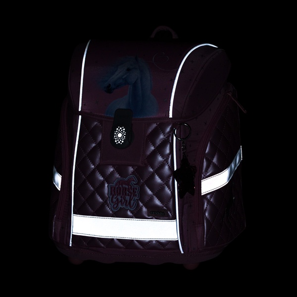 Der Rucksack ist mit reflektierenden Elementen für mehr Sicherheit, einem einfachen Magnetverschluss, einer Inneneinteilung und vielen Fächern für übersichtliche Schulsachen ausgestattet. Geeignet für Kinder ab 121 cm Körpergröße. Das Set enthält außerdem: Übungstasche mit praktischem Kordelzugverschluss. Einstöckiges Federmäppchen mit zwei Klappen – ohne Füllung, mit Schlaufen für Stifte und einer transparenten Folie für den Stundenplan.