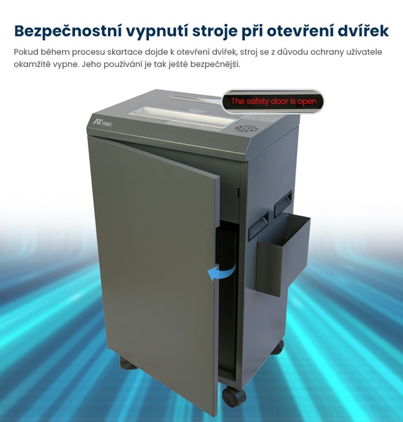 Vhodný pro skartování dokumentů o šíři do 270 mm.