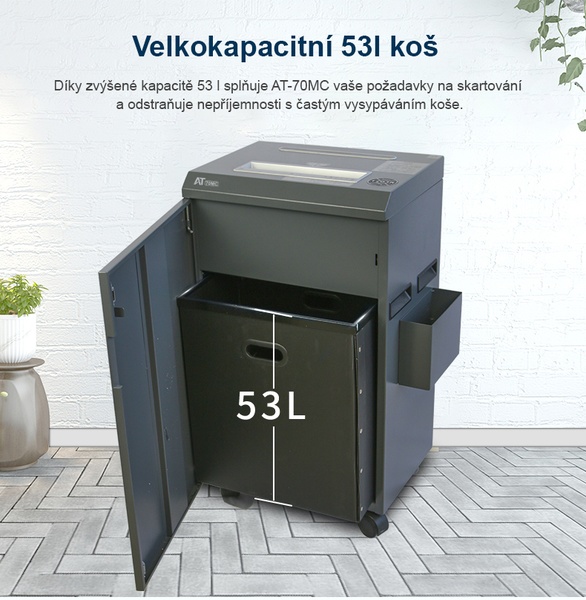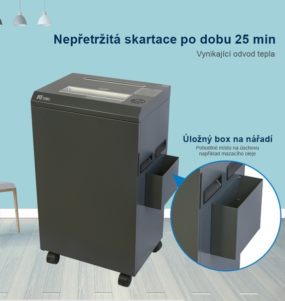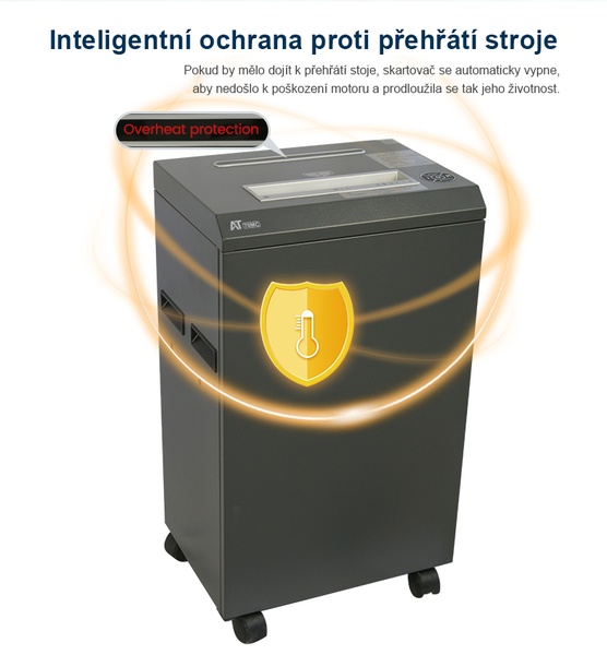 Robustní skartovací stroj praktického designu v odolném plechovém provedení, s příznivým poměrem cena/výkon.
