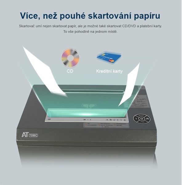 Příležitostně lze skartovat sešívací a kancelářské sponky, kreditní karty nebo CD.