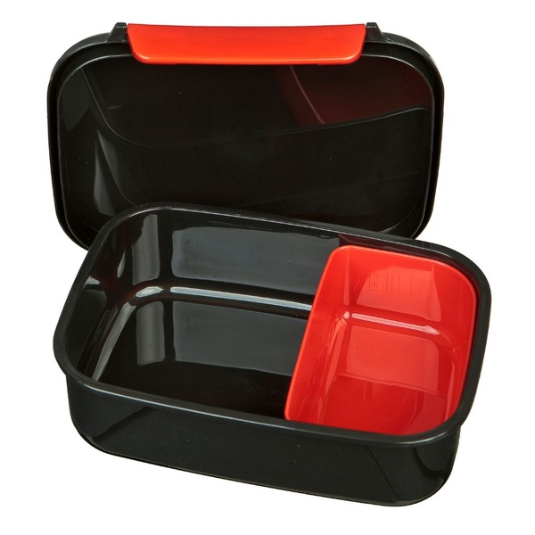 Kunststoff-Brotbox Spider-Man mit Motiv, innen mit Trennfach. Die Box ist nicht für die Spülmaschine und nicht für die Mikrowelle geeignet.