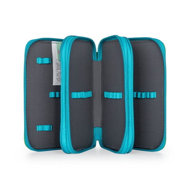 Das Federmäppchen hat einen festen Reißverschluss mit großen Schiebern für eine einfache Handhabung. Eine Etage ist mit einem Klarsichtfach für den Wochenplan ausgestattet.