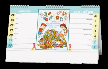 Stolní kalendář s týdenním kalendáriem, při kterém se žádné dítě nenudí - s obrázky, úkoly a bludišti. Papír: ofset, 100g/m2 Obálka: křída lesk 135 g/m2 Stojánek je z kvalitní bílé lepenky 600g/m2 Dělená kovová spirála "twin wire"