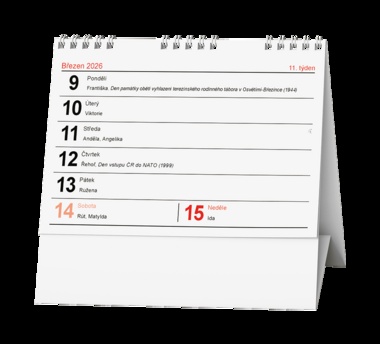 Jednoduchý stolní kalendář s barevným motivem s týdenním kalendáriem. Malý formát a trendy motiv oživí Váš den. Volltext →