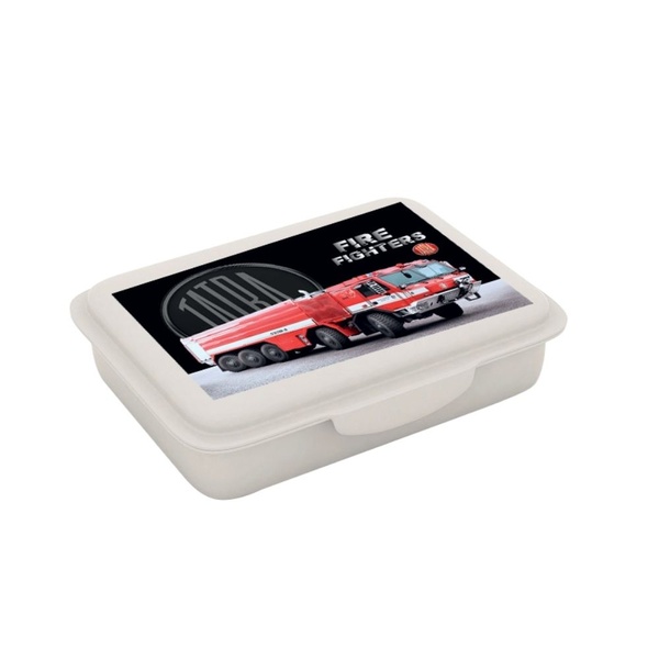 Snackbox aus Kunststoff mit Feuerwehrmotiv.