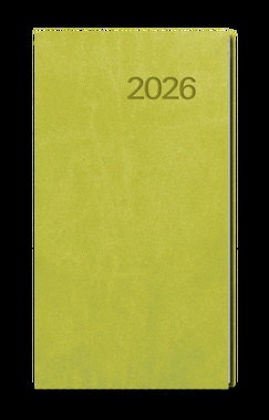 Kapesní týdenní diář v zelené barvě je vyráběný z jemné hladké vivelly. Trendy a praktický doplněk do každé kapsy. Diář má velký prostor pro poznámky a plánování. jemný hladký materiál, ražba roku, šitá vazba V8, stužka, perforované rožky, ofset, 70g/m2