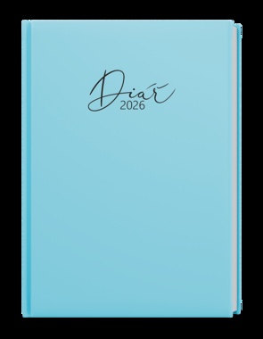 Týdenní diář v nepoškrabatelném laminu s parciálním lakem v pastelově modré barvě. Je vyráběný ve formátu A5, má velký prostor pro poznámky a plánování. tištěná grafika potažená nepoškrabatelným matným laminem s parciálním lakem, šitá vazba V8, stužka, kapitálky, perforované rožky, mapa ČR a SR, vlepená kapsa, ofset, 70g/m2