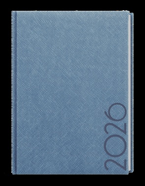 Neobyčejný týdenní diář s lesklým povrchem ze strukturovaného materiálu v modrošedé barvě. Je vyráběný ve formátu A5, má velký prostor pro poznámky a plánování. strukturovaný materiál s lesklým povrchem, ražba roku, jednostranná pěnová výplň desek, šitá vazba V8, stužka, kapitálky, perforované rožky, mapa ČR a SR, vlepená kapsa, ofset, 70g/m2