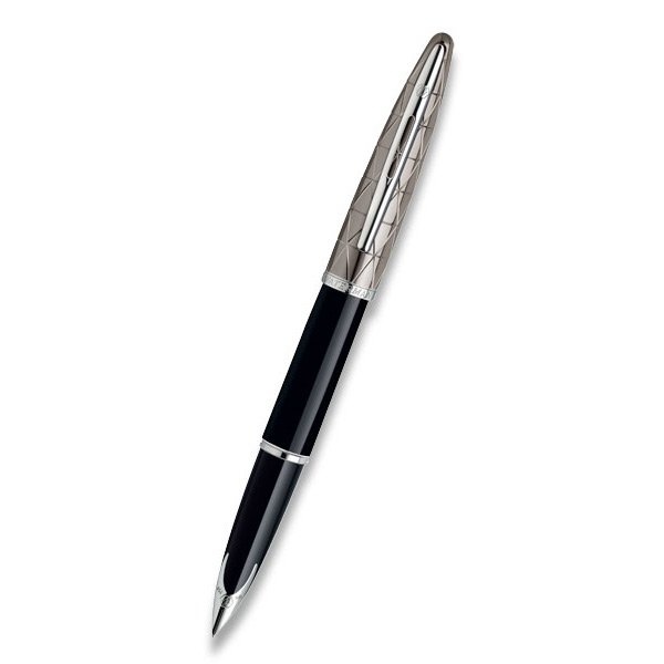 Gehäuse und Deckel aus schwarz lackiertem Messing mit titanbeschichteten Kreuzgravuren. In Kombination mit versilberten und palladierten Accessoires. Füllfederhalter: Schnappverschluss Präzisionspolierte 18 Karat Goldfeder (Reinheit Au 750/1000) Vollständig rhodiniert Kann sowohl mit Tintenpatronen als auch mit Flaschentinte verwendet werden Lieferung mit Patrone in einer Geschenkbox.